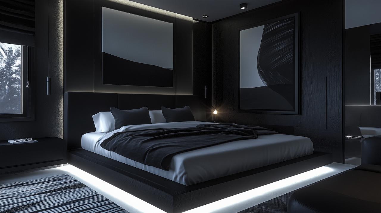 Las tiras LED ocultas detrás de los muebles, bajo la cama o en el perímetro del techo son una solución ideal para crear un ambiente sofisticado y envolvente. Esta luz indirecta no deslumbra, sino que baña las superficies con un resplandor suave que resalta las líneas arquitectónicas y los contornos del mobiliario. En una habitación en blanco y negro, este tipo de iluminación puede hacer que los muebles parezcan flotar, añadiendo una sensación de ligereza y modernidad. Además, las tiras LED permiten ajustar la intensidad y, en algunos casos, incluso el color de la luz, lo que ofrece un control total sobre la atmósfera del espacio. Esta técnica es especialmente útil para crear una transición suave entre las zonas de luz y sombra, evitando contrastes bruscos que puedan resultar incómodos a la vista.